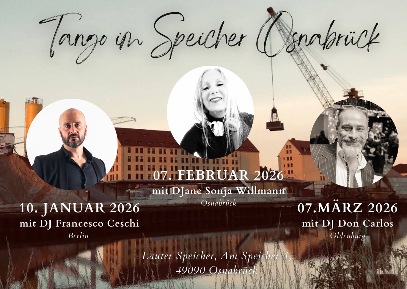| 07.02.2026 (Samstag) | Tango im Speicher (LAUTER Speicher Am Speicher 1 49090 Osnabrück) |